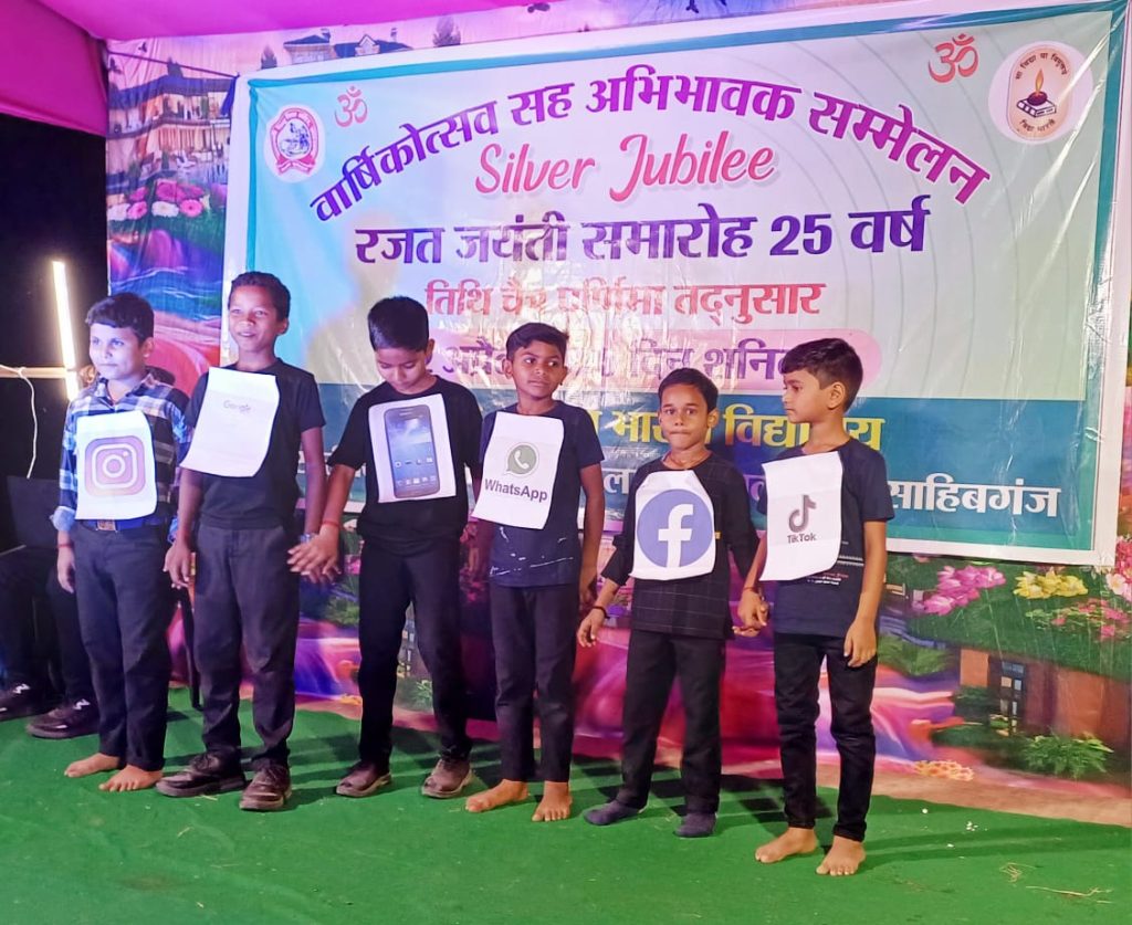 प्रदीप मंडल जागता झारखंड राजमहल संवाददाता राजमहल प्रखंड अंतर्गत लालमाटी सरस्वती शिशु विद्या मंदिर लालमाटी में विद्यालय के 25 वर्ष पूर्ण होने पर रजत जयंती समारोह का आयोजन किया गया।कार्यक्रम का शुभारंभ विद्यालय के सचिव प्रमोद चौधरी ,कोषाध्यक्ष मनोज कुमार चौरसिया लालमाटी पंचायत की मुखिया बबीता देवी और विद्यालय के प्रधानाचार्य संतोष कुमार उपाध्याय ने संयुक्त रूप से दीप प्रज्ज्वलित कर एवं पुष्प अर्पित कर किया।इस कार्यक्रम में हनुमान जयंती के अवसर पर सामूहिक हनुमान चालीसा पाठ किया गया। विद्यालय के भैया बहनों ने अनेक ज्ञानप्रद नाटक,सामूहिक नृत्य,एकल नृत्य,गीत,चुटकुले भाषण से उपस्थित सभी दर्शकों का मन मोह लिया।भैया बहनो ने कार्यक्रम की शुरुआत में गणेश वंदना पर नृत्य किया, वृक्ष की कटाई और उनसे होने वाले हानि को दर्शाते हुए एक सुंदर नाटक प्रस्तुत किया। आधुनिकीकरण के युग में मोबाइल के प्रकोप को दिखाते हुए भैया बहनों ने नाटक प्रस्तुत किया, एकल नृत्य में महाकुंभ प्रयागराज और शिव तांडव को दिखाया गया। अभी के दौर में बच्चे खेल से कितने दूर हो रहे हैं इसको देखते हुए पुराने जमाने में खेले जाने वाले खेल को एक नृत्य के माध्यम से दिखाया गया। छोटे-छोटे भैया भैया बहनों ने अपनी अपनी मनमोहक प्रस्तुति से उपस्थित थे। अभिवावकों एवं दर्शकों का मन मोह लिया।सभी भैया बहनों ने अपनी अपनी सुंदर पस्तुति देकर लोगों का मन मोह लिया।विद्यालय के प्रधानाचार्य संतोष कुमार उपाध्याय ने विद्यालय के विकास के 25 वर्षो को कहानी संक्षेप में सभी के समक्ष प्रस्तुत किया।इस कार्यक्रम में अनेक अभिवभावक,और समाज के अनेकों दर्शक उपस्थित होकर कार्यक्रम का लुप्त उठाया। विद्यालय के प्रधानाचार्य संतोष कुमार उपाध्याय, उत्तम मंडल,राजकिशोर दुबे, उज्ज्वल साहा, मिथिलेश कुमार यादव,पृथ्वी चांद टुडू, वर्षा कुमारी, सुश्री आकांक्षा भारती उपस्थित होकर कार्यक्रम को सफल बनाया।